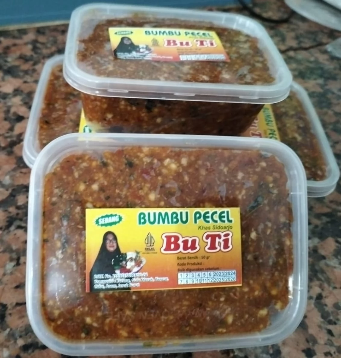 HIGIENIS & HALALPecel Bu’Ti adalah bumbu pecel khas Kota Sidoarjo yang diracik dari resep turun-temurun keluarga Jawa Timur. Menggunakan kacang tanah pilihan, cabai segar, kencur asli, dan rempah Nusantara, Pecel Bu’Ti menghadirkan rasa autentik pecel tempo dulu dengan standar produksi modern yang higienis dan halal.
